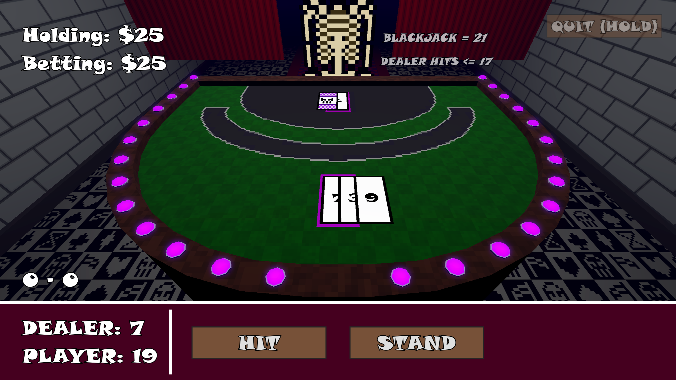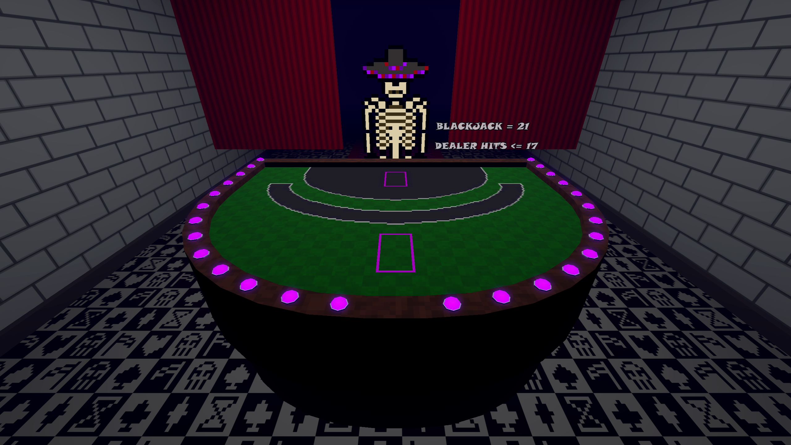 You're broke; $50 to your name. To save your pocketbook, you decide to enter the Deadman's Spade; a death casino. You risk your life in a gauntlet of 8 skeleton dealers.
