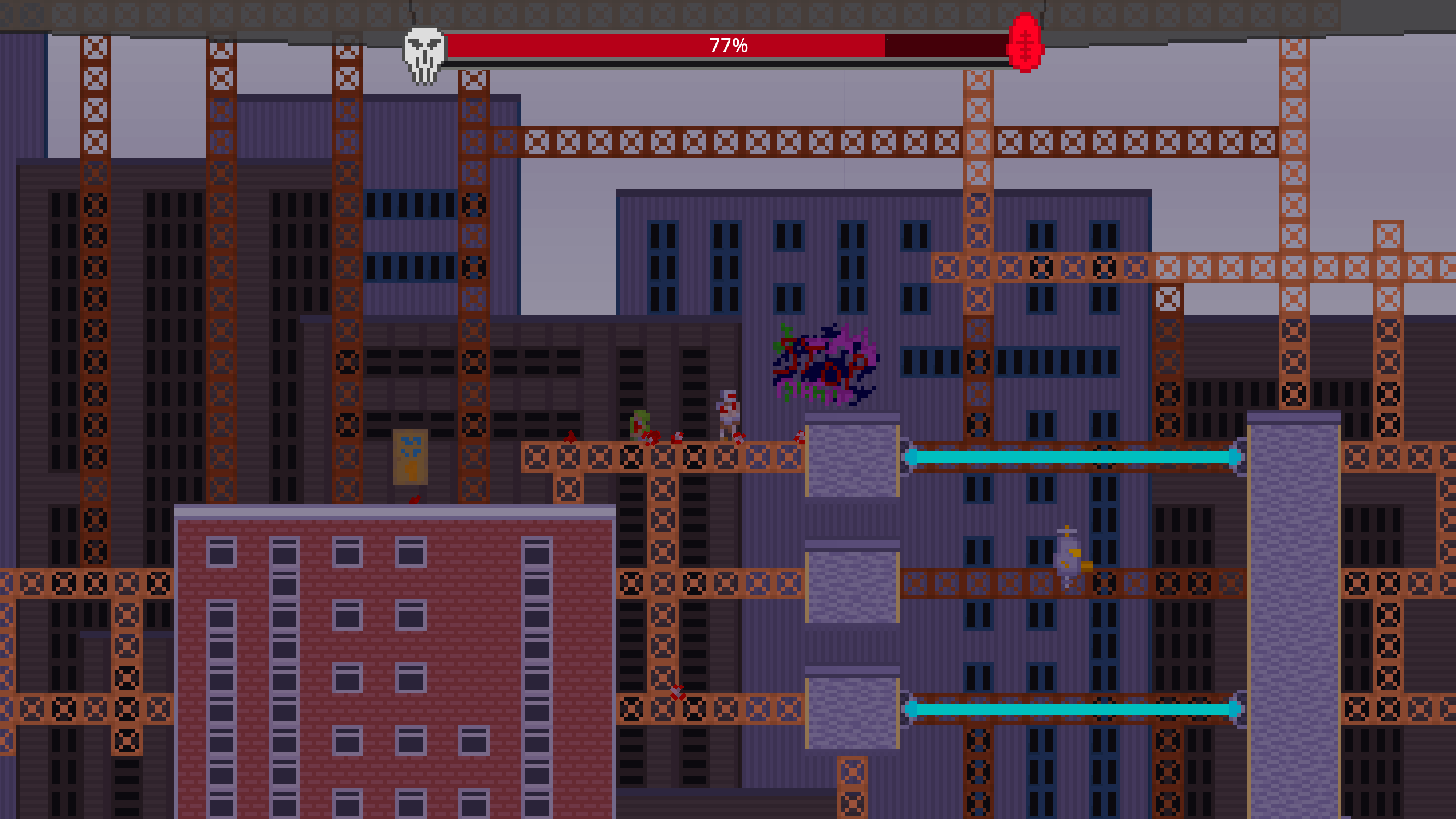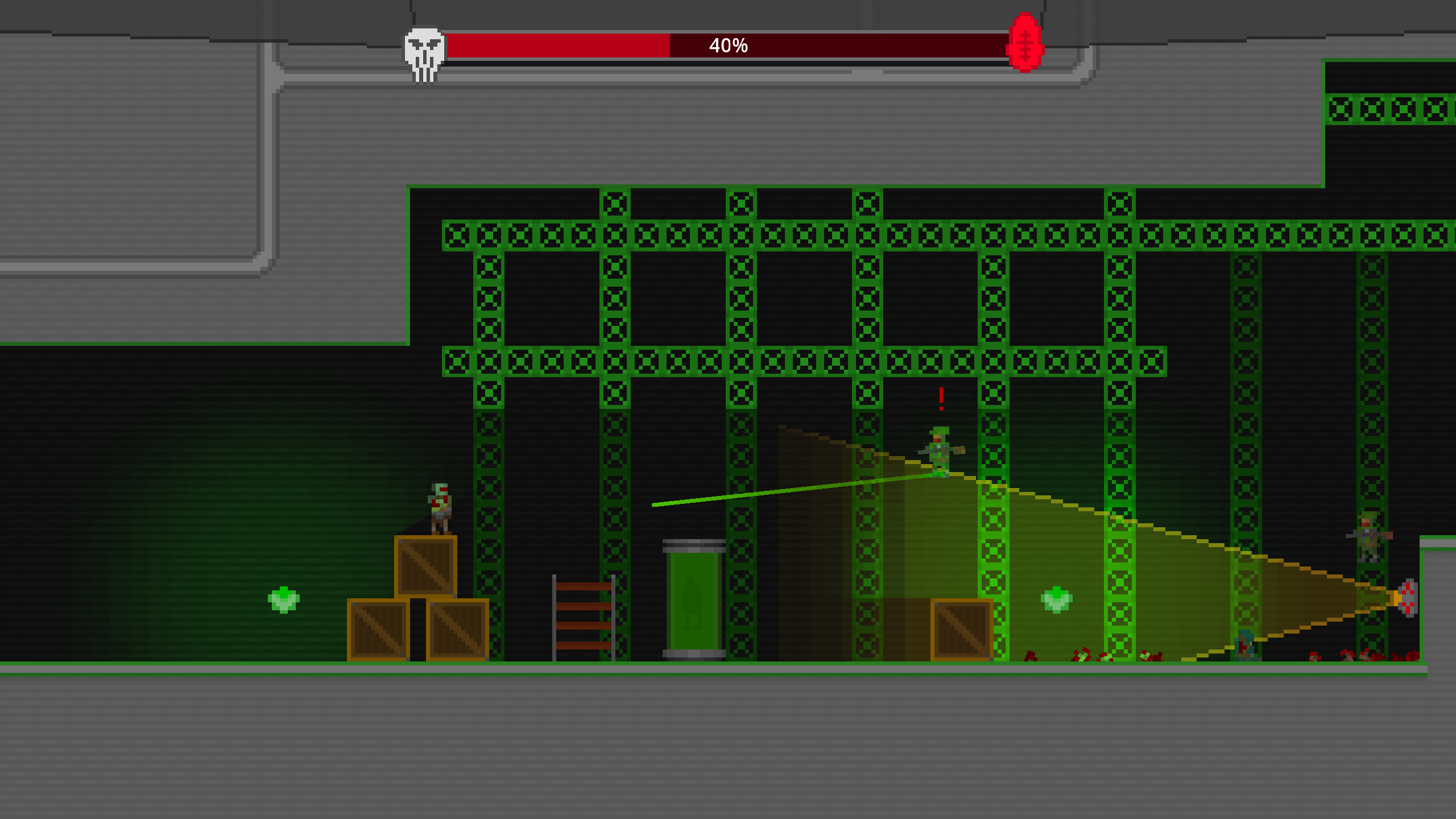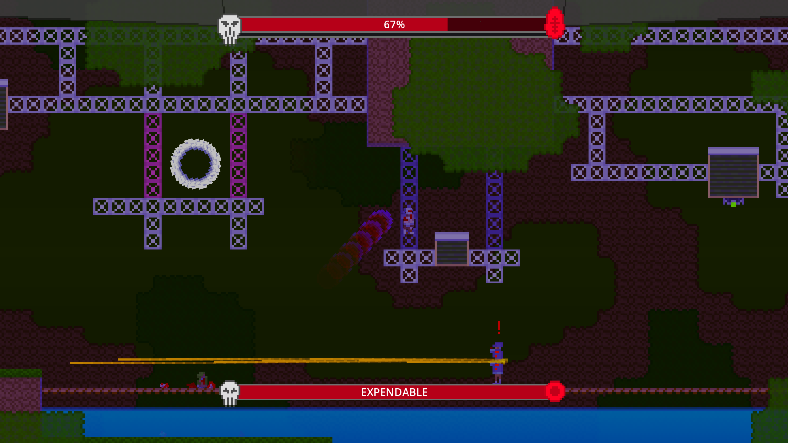 Frontline Fodder is a 2D action platformer, combining the likes of Celeste's platforming with Hotline Miami's brutality. Enemies on opposite factions will fight each other while you swiftly take them out one by one.